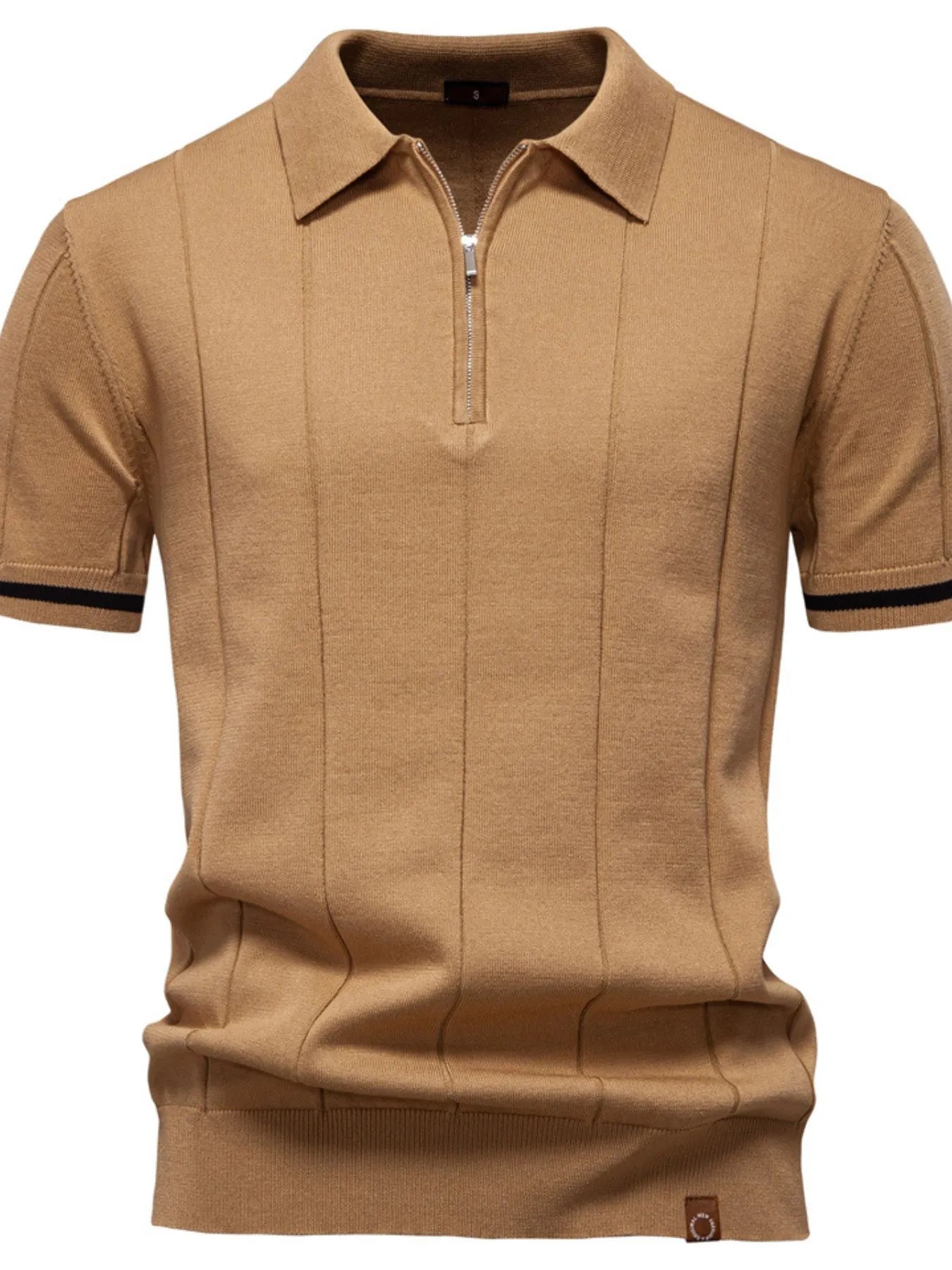 Men's Classic Zip-Neck Knitted Polo Shirt
