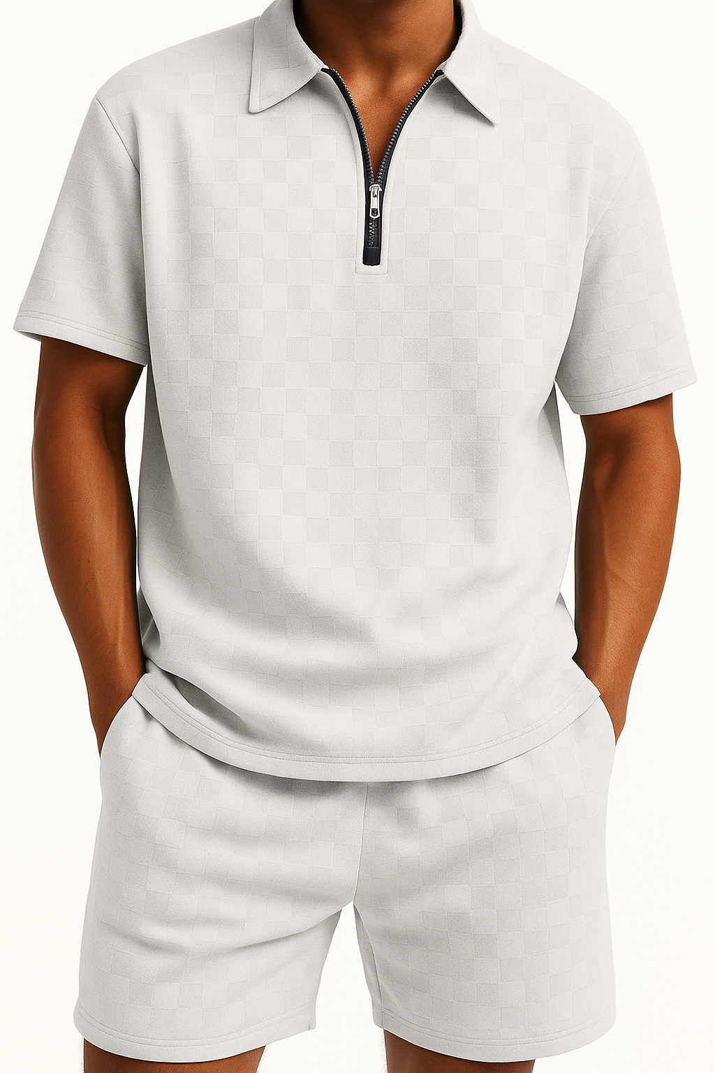 Men's Full Size Quarter Zip Short Sleeve Top and Shorts Set Plus Size