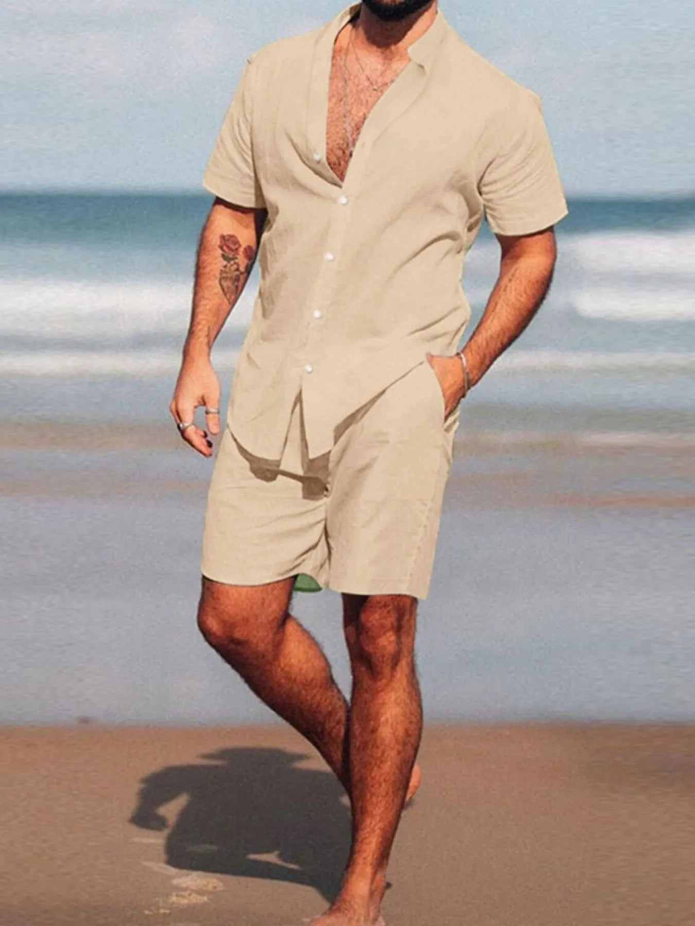 Men's Full Size Short Sleeve Shirt and Shorts Set Plus Size