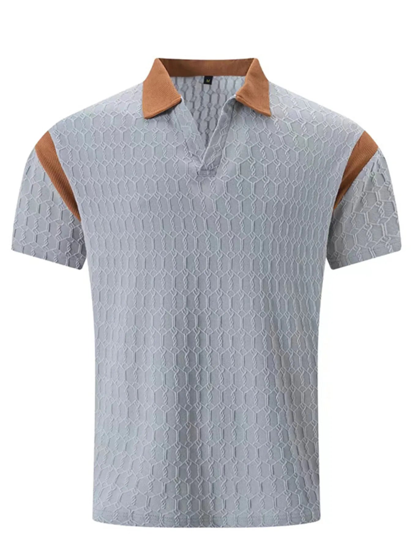 Men's Full Size Textured Short Sleeve Polo Plus Size