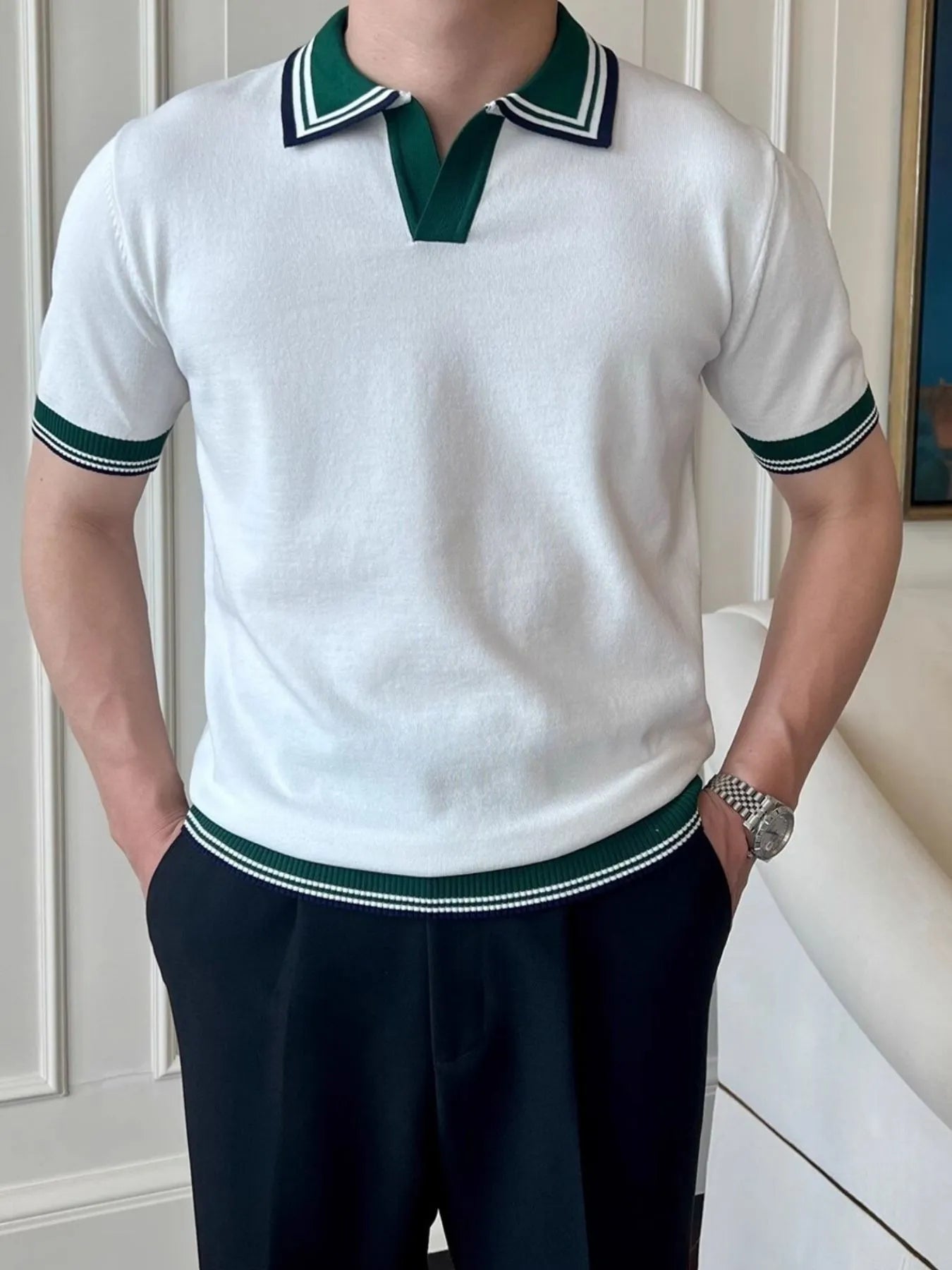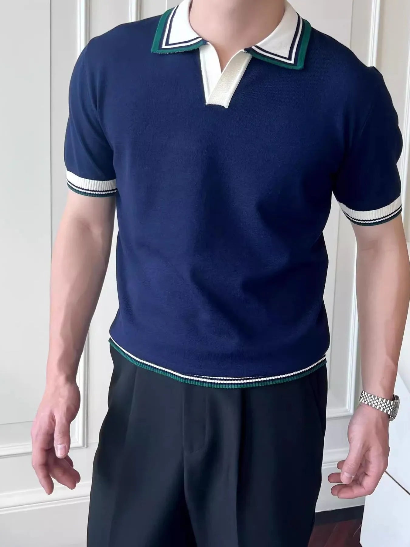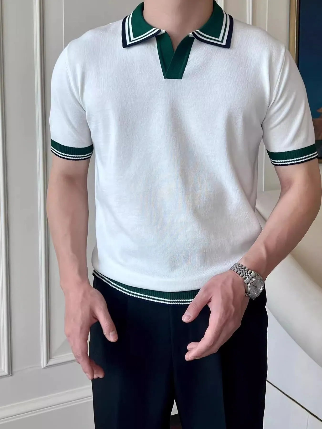 Men's Plus Size Classic Striped Collar Knit Polo Shirt