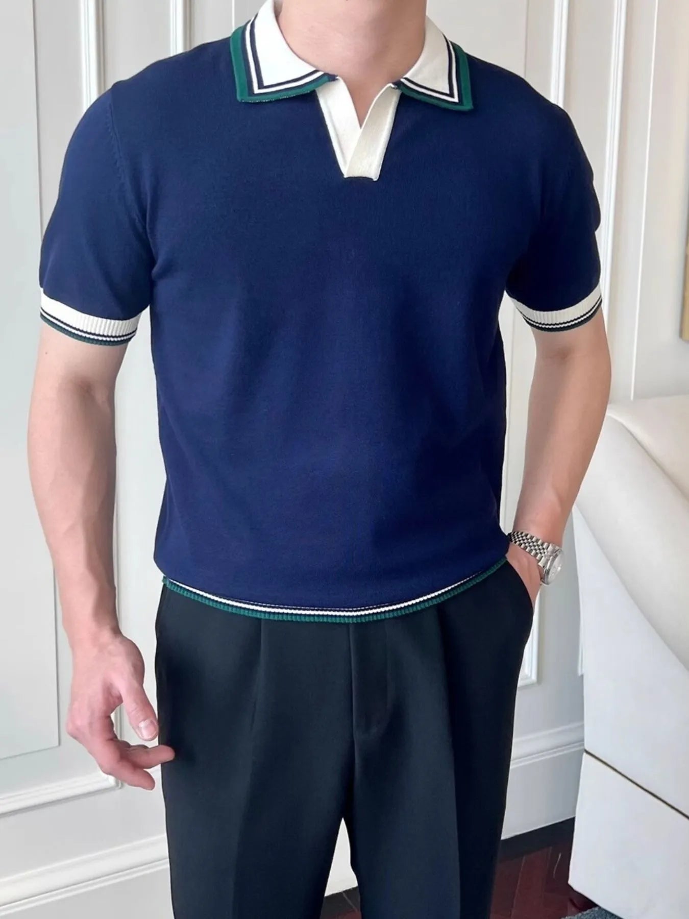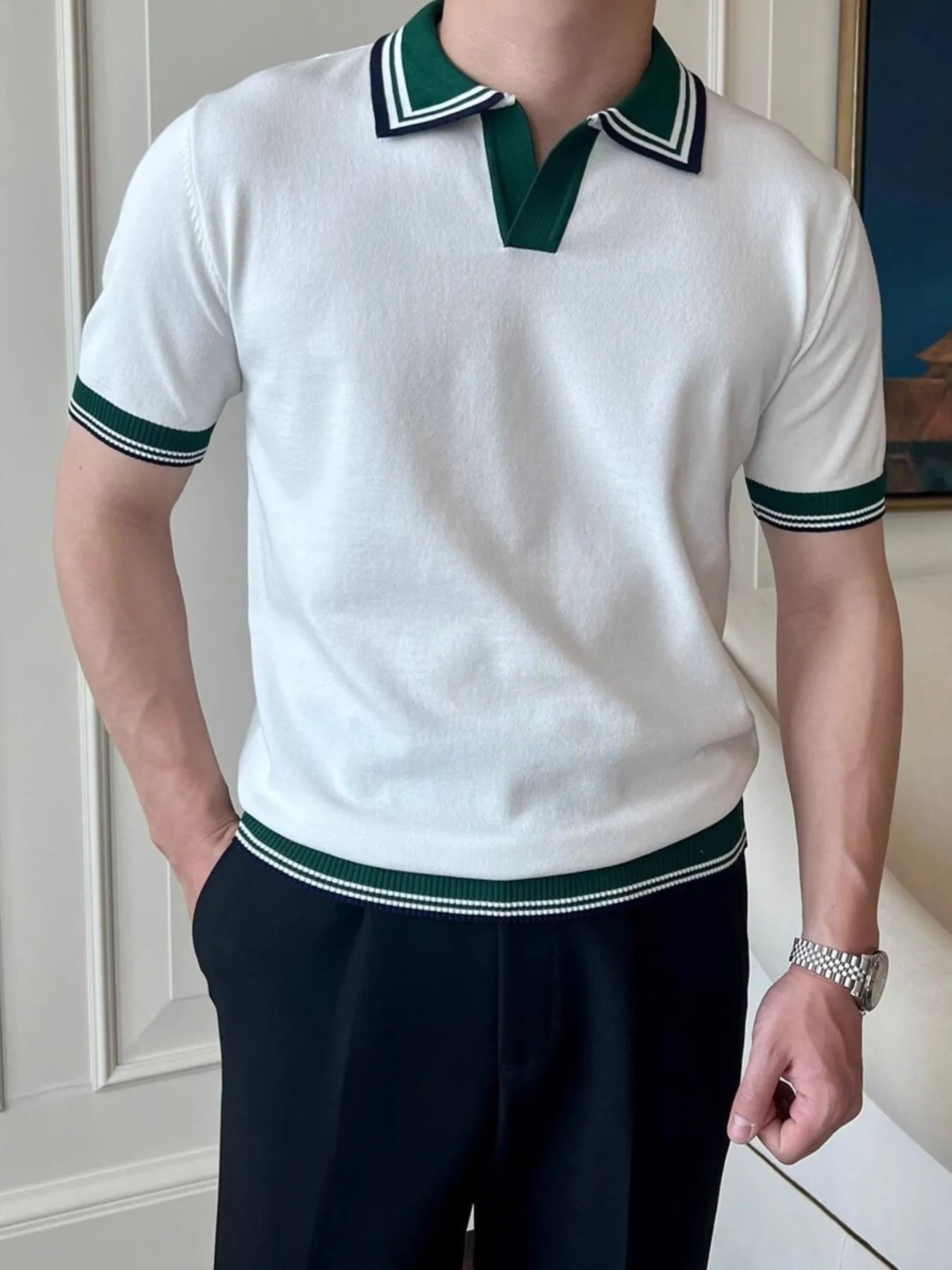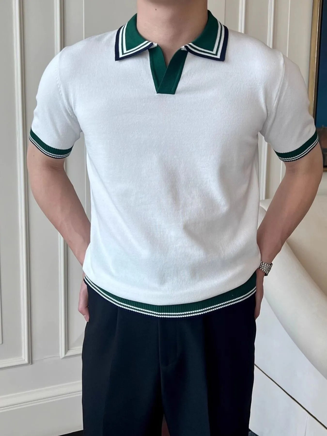 Men's Plus Size Classic Striped Collar Knit Polo Shirt